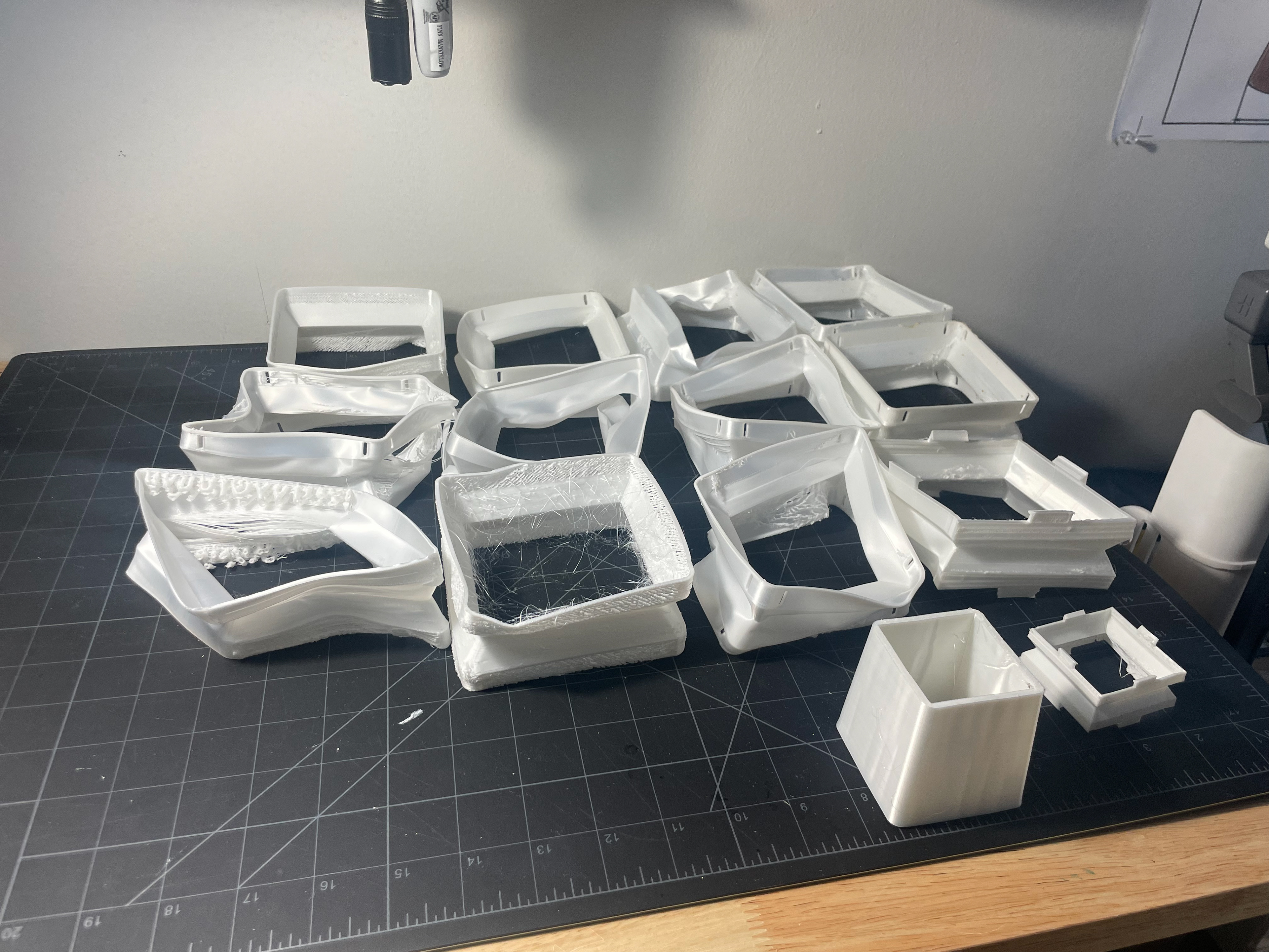 During my prototyping, I used a flexible PLA filament to allow myself to 3d print in a material that would diffuse the light from the LED strip while being flexible and allowing the material to compress when the lamp was pressed. I went through 15+ different iterations until I perfected the thickness and print settings so I got a high-quality print that had the desired amount of resistance & diffusion.