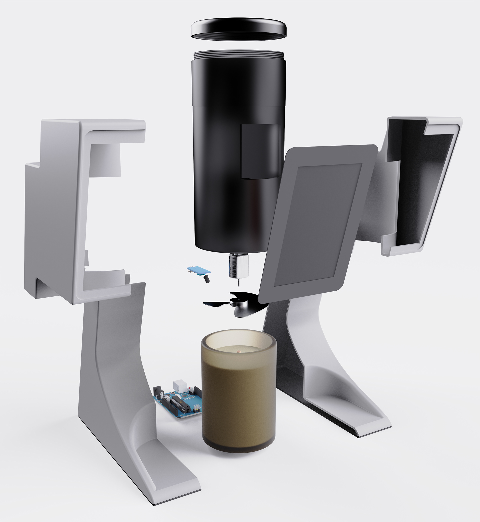 Creating a high-end device for users who value safety and the quality experiences of burning candles of differing sizes, shapes, wick types, and materials. With a strong inspiration from high-end coffee machines to match the design language of items, with cup-shaped items below for the candles.